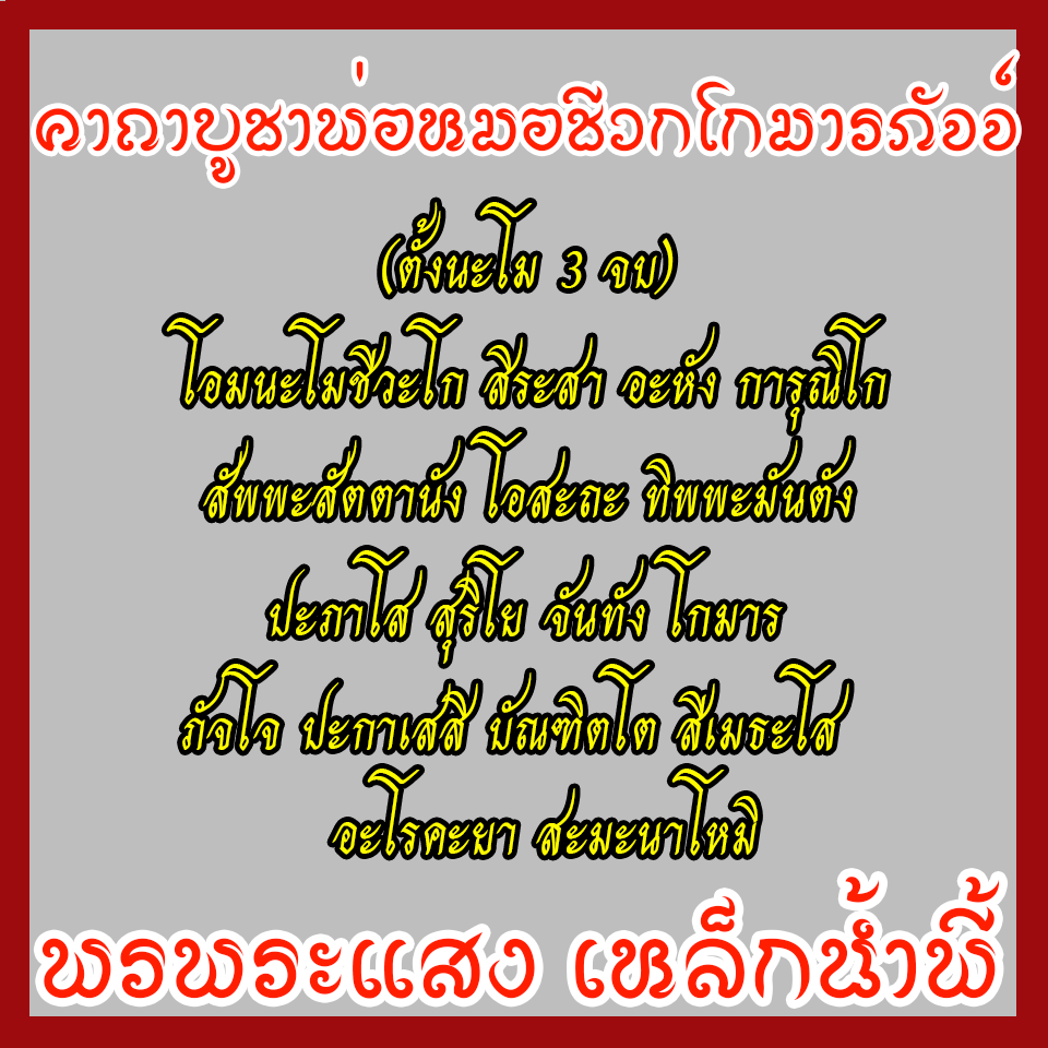 คาถาบูชาพ่อหมอชีวกโกมารภัจจ์ สวดเพื่อขอให้หายป่วยและมีสุขภาพร่างกายแข็งแรง หมอชีวกโกมารภัจจ์เป็นหมอที่รักษาพระพุทธเจ้า และเคยรักษาพระเจ้าพิมพิสาร ท่านถือเป็นบรมครูของวงการแพทย์ แม้แต่พระพุทธเจ้ายังยกย่องหมอชีวกโกมารภัจจ์ และยังสรรเสริญในความสามารถในการรักษาโรคของ หมอชีวกโกมารภัจจ์