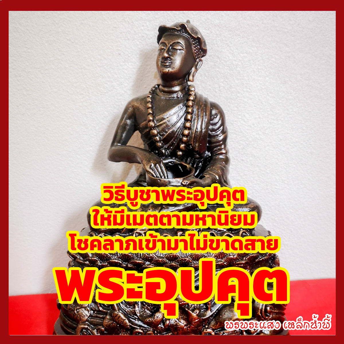 อุปคุตตะ จะมหาเถโร สัพพะเสน่หาปุพชิโต โสระโห อุปะคุตะ ปัจจะยา ธิมะหิ อุตตะโม โหติ สัพพะทุกขะ สัพพะภะยะ สัพพะโรคะ พุทธา ธัมมา สังฆา อานุภาเวนะ วินาสสันติ ฯ