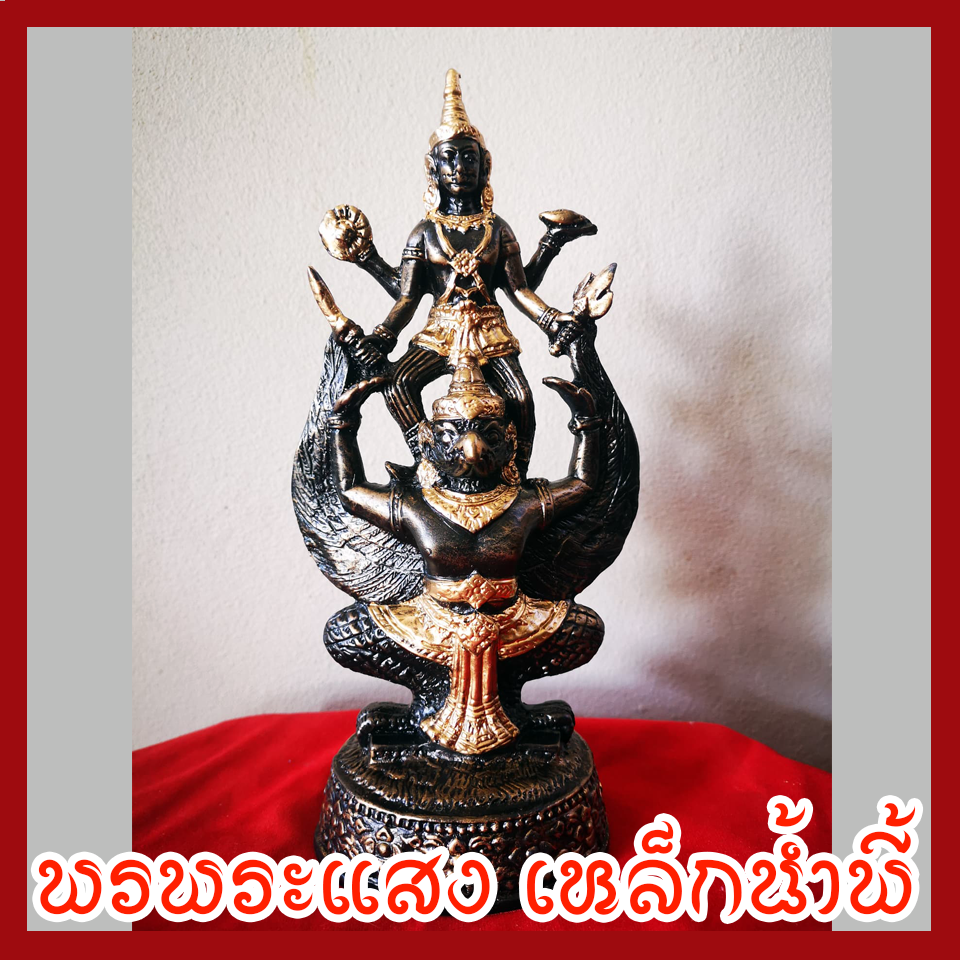 พระนารายณ์ทรงครุฑ ศาสตร์ประวัติพระนารายณ์ทรงครุฑ ใน คัมภีร์พราหมณ์ปุราณะ ที่กล่าวไว้ว่า พระศิวะ ทรงมีพระประสงค์ที่จะสร้างสวรรค์และโลกมนุษย์ ซึ่งถือว่าเป็นงานใหญ่ จึงต้องการผู้ช่วย โดยการนำพระหัตถ์ซ้ายมาลูบพระหัตถ์ขวา จนบังเกิดเป็นเทพขึ้นมาองค์ชื่อ พระวิษณุ หรือ พระนารายณ์ พร้อมกับทรงมอบหมายหน้าที่ให้เป็นเทพผู้ทำหน้าที่บริหารและคุ้มครองโลก รวมทั้งปราบปรามผู้สร้างความเดือดร้อนแก่มนุษย์ และชาวสวรรค์ พระนารายณ์ มีกายเป็นสีดอกตะแบก มี ๔ กร ถือศัตราวุธต่างๆ กัน คือ คทา ตรี จักร สังข์ ทรงมงกุฎชัย ประทับอยู่กลางเกษียรสมุทร บนหลังพญานาค ชื่อ อันตนาคราช และทรงใช้ ครุฑ เป็นพาหนะ มีพระมเหสีชื่อ พระลักษมี